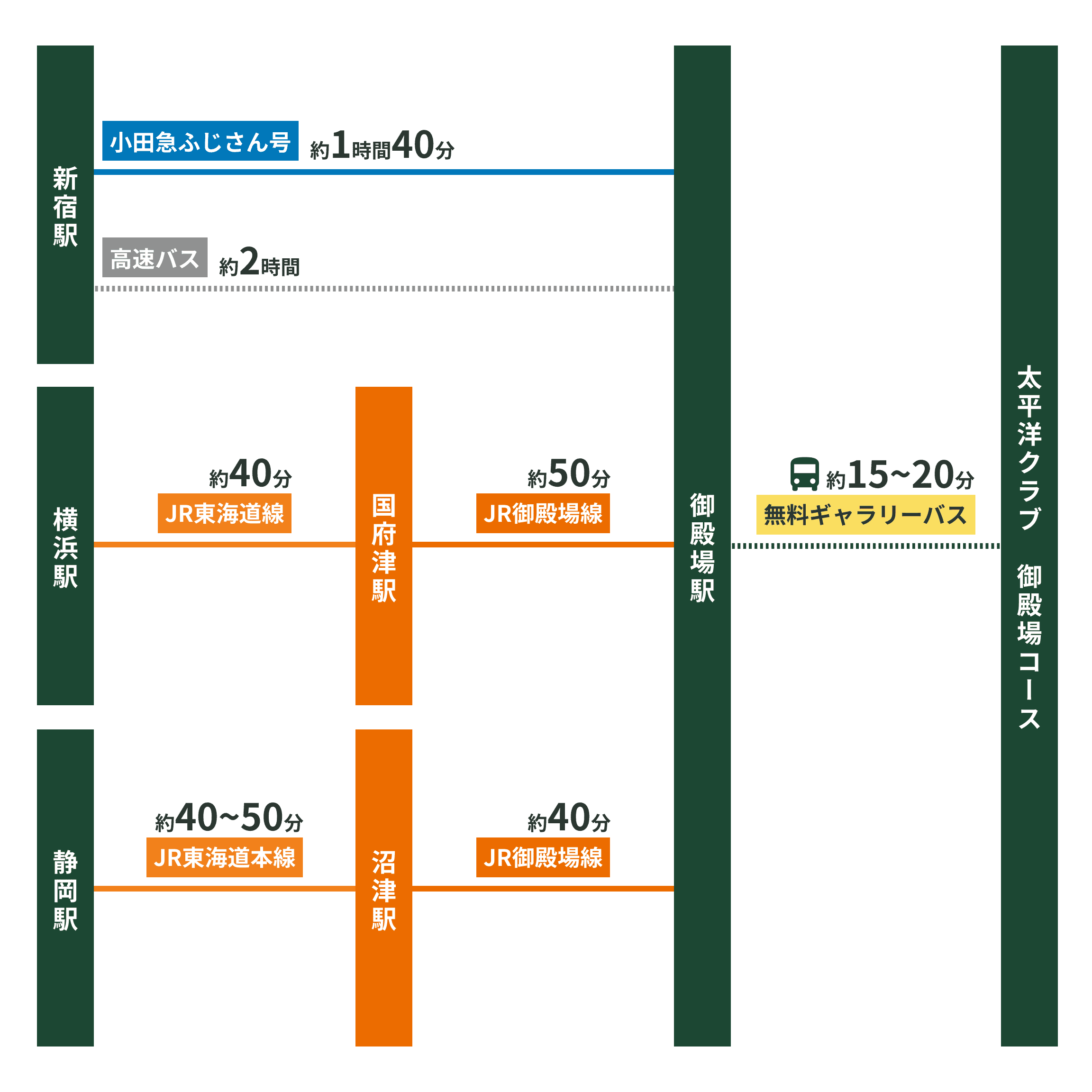 ※実際の所要時間とは異なる場合がございます。ご来場の際は各種経路案内サービスを事前にご確認ください。